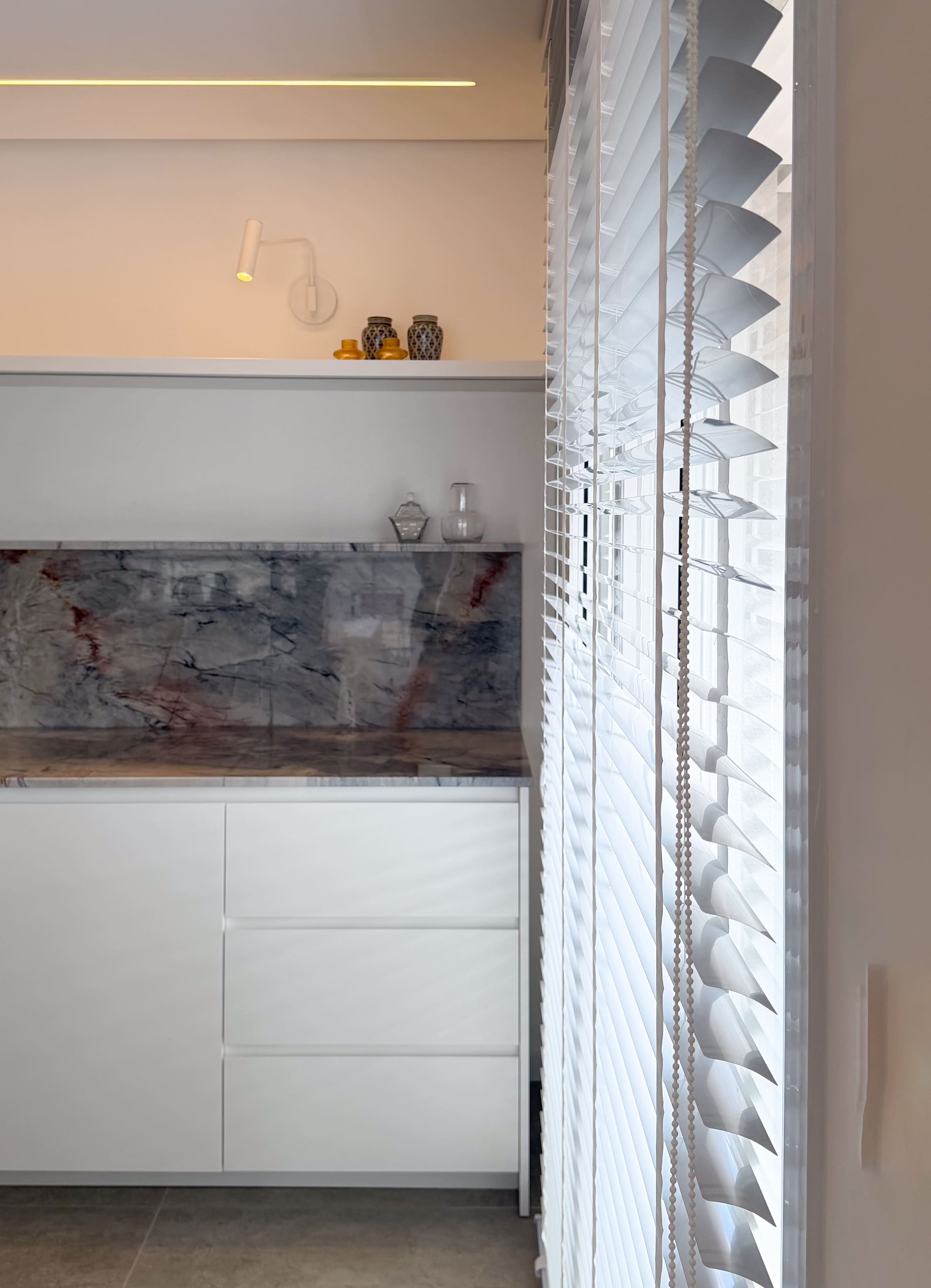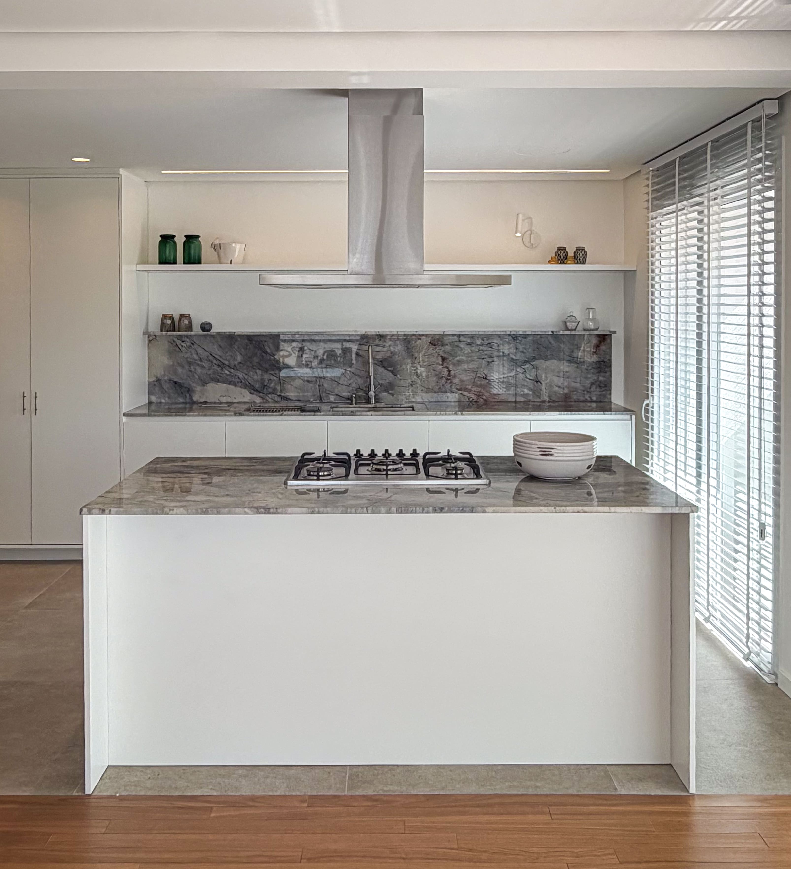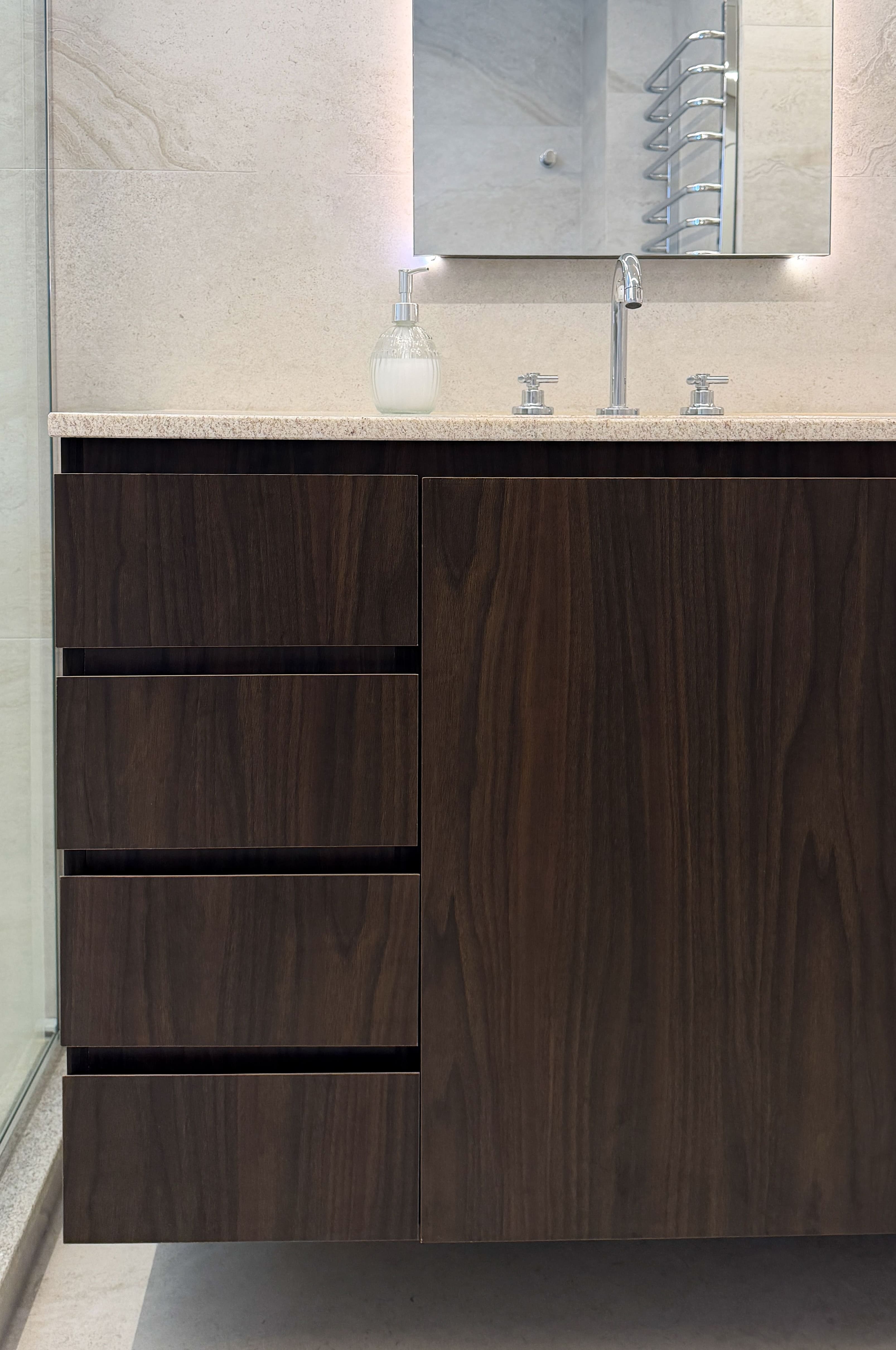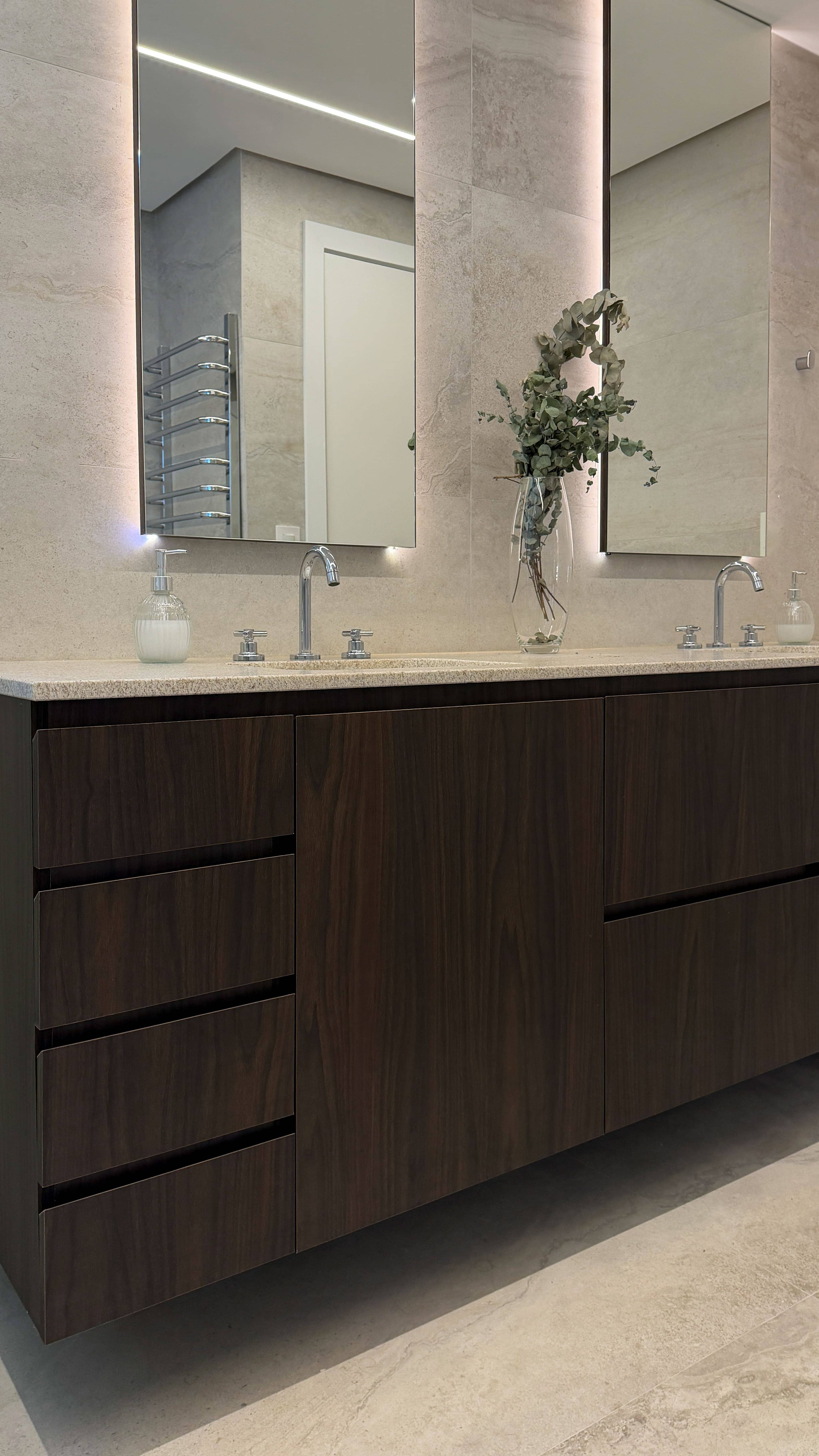 O espaço foi planejado para ser altamente funcional, aliando praticidade ao uso cotidiano a uma estética leve e equilibrada. A paleta de cores claras, combinada a texturas sutis e à mistura dos tons de madeira, cria uma composição harmônica e elegante, resultando em um ambiente contemporâneo, sofisticado e duradouro.