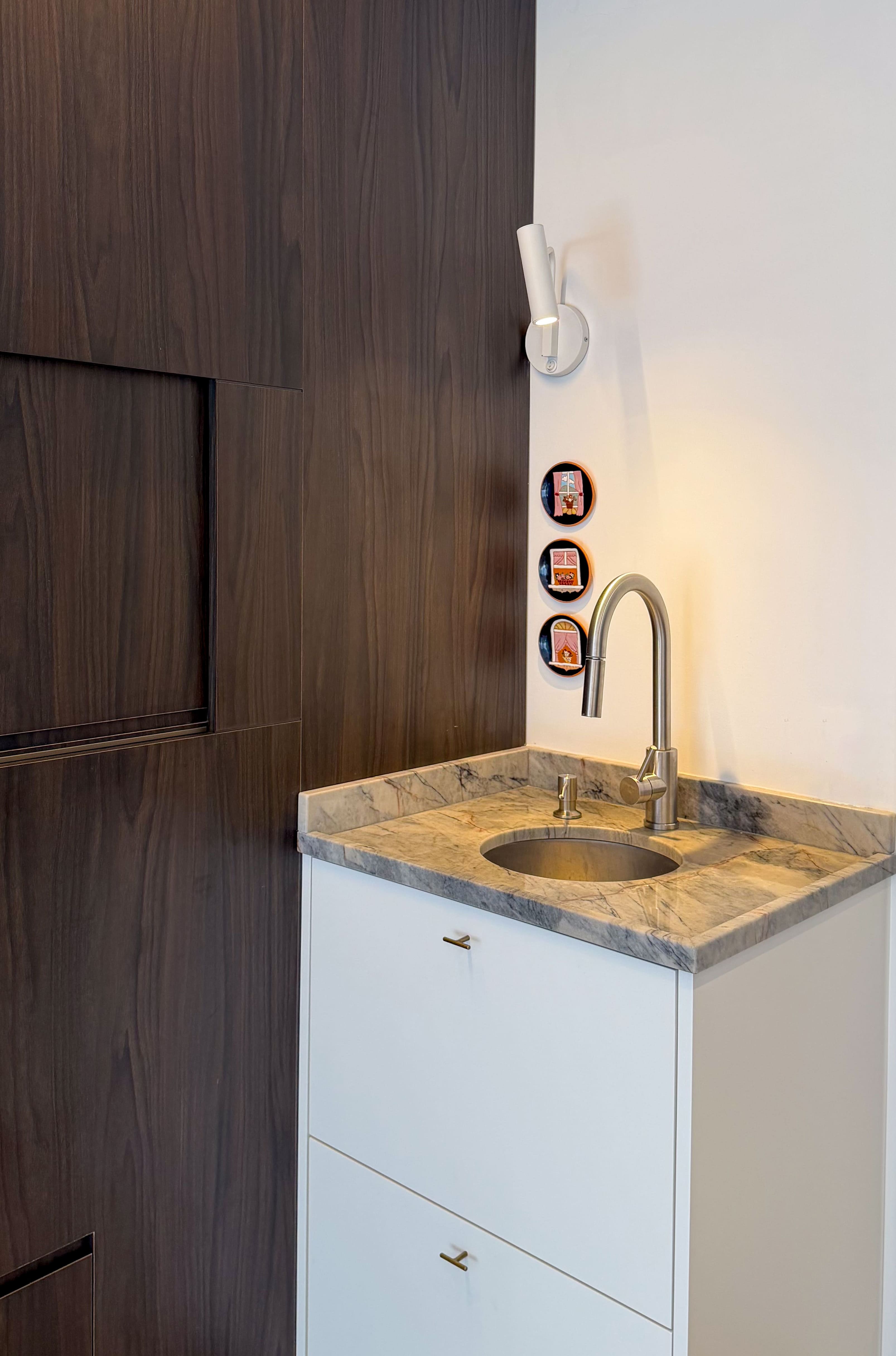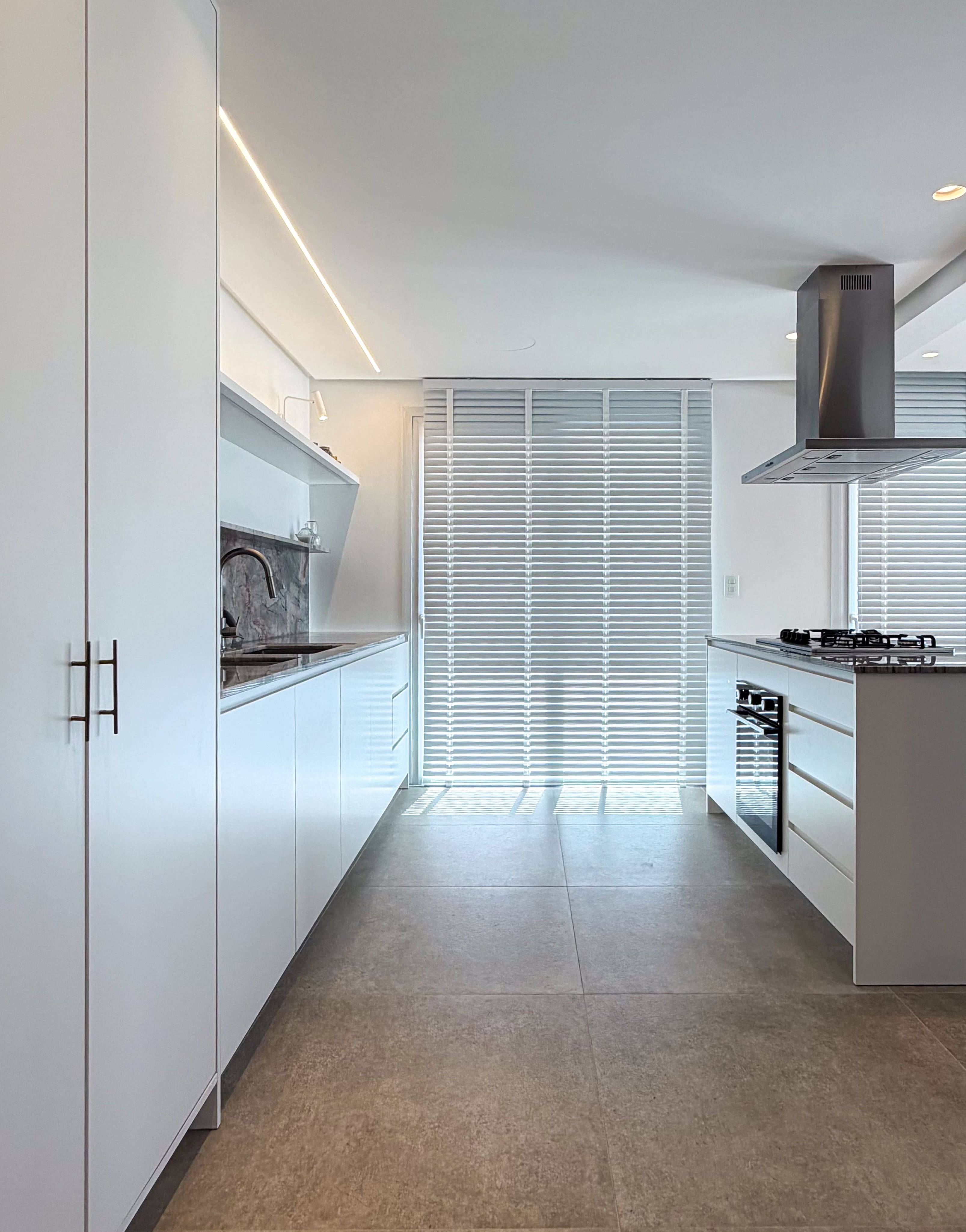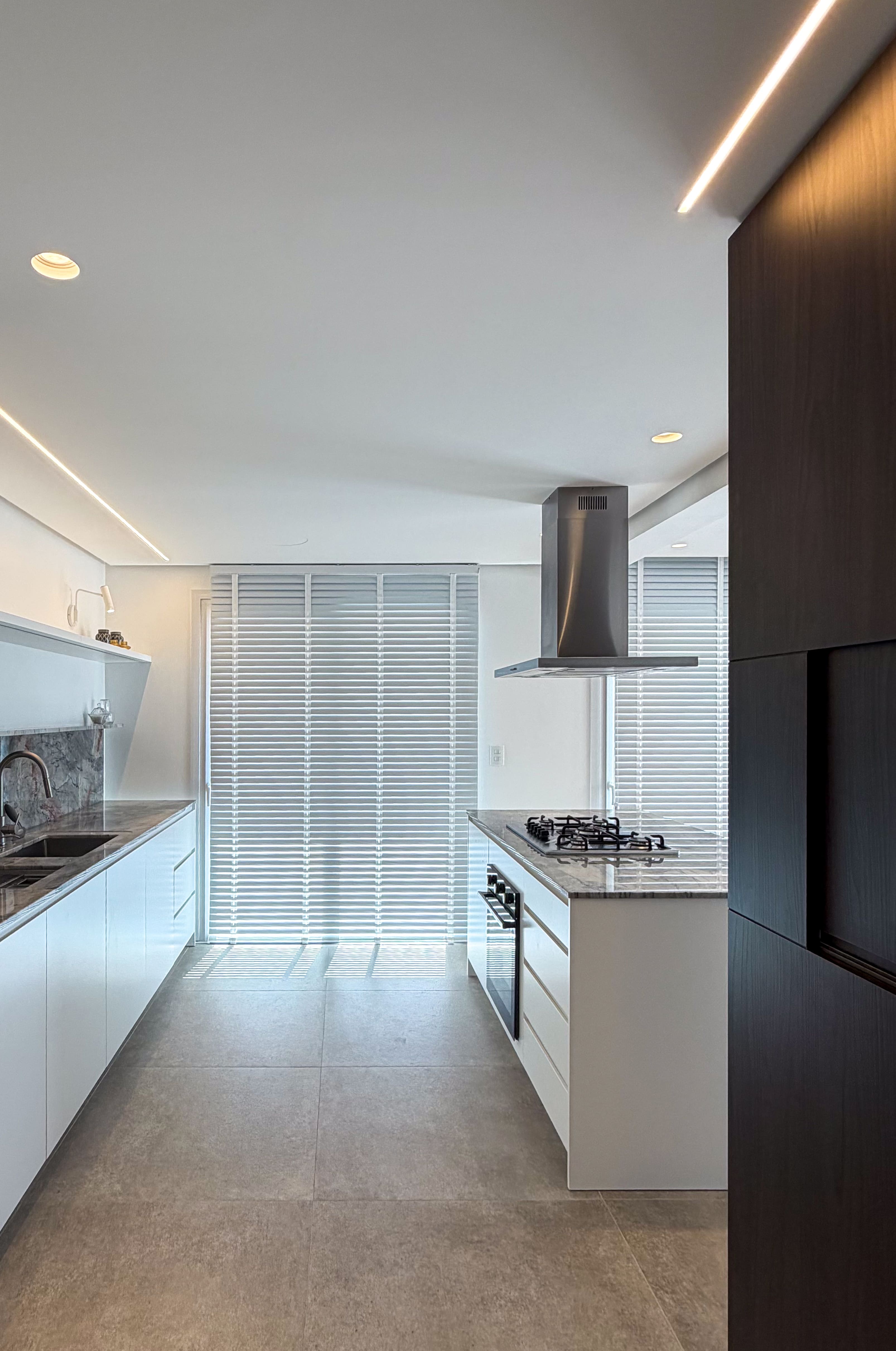 O espaço foi planejado para ser altamente funcional, aliando praticidade ao uso cotidiano a uma estética leve e equilibrada. A paleta de cores claras, combinada a texturas sutis e à mistura dos tons de madeira, cria uma composição harmônica e elegante, resultando em um ambiente contemporâneo, sofisticado e duradouro.